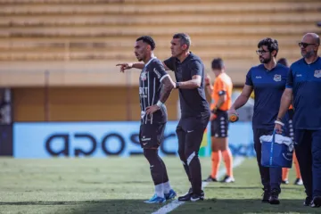 Auxiliar do Corinthians orienta seu jogador durante o embate contra o Água Santa, pelo Paulistão (Rafael Assunção/Ag. Paulistão)