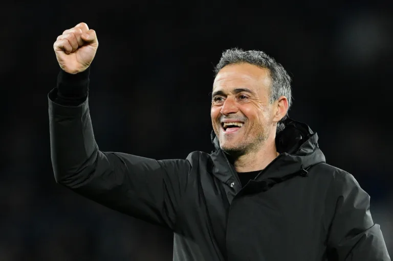 Técnico Luis Enrique, do PSG, comemora jogada do time (David Ramos/Getty Images