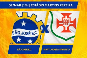 Neste sábado, 2 de março, o líder do Campeonato Paulista da Série A2, o São José, enfrenta a Portuguesa Santista pela 12ª Rodada da competição, com transmissão pela TV Cultura. Diretamente do estádio Martins Pereira, em São José dos Campos, interior paulista, o jogo terá narração de Marco de Vargas e comentários de Paulo Jamelli, a partir das 14h45, ao vivo, com a bola rolando às 15h.