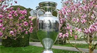 Taça que será levantada pelo vencedor da Eurocopa 2024 (Reprodução/X/Eurocopa)