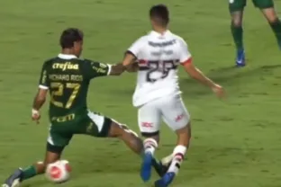 Entrada de Richard Ríos no clássico contra o SPFC (Reprodução)