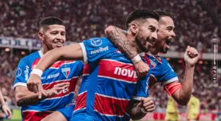 Elenco do Fortaleza comemorando gol contra o Boca Juniors (Créditos: Foto: Mateus Lotif | Fortaleza EC)