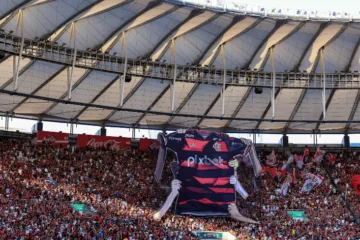 Torcedores do Flamengo comemoram antes do jogo de volta da final do Campeonato Carioca 2024 entre Nova Iguaçu e Flamengo no Maracanã (Buda Mendes/Getty Images)