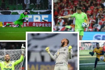 Gabriel Vasconcelos (Juventude), Rochet (Internacional) , Weverton (Palmeiras), Éverson (Atlético-MG) e Lucas Arcanjo (Vitória) - Fernando Alves/ECJ / Ricardo Duarte / Internacional / Palmeiras / Pedro Souza / Pietro Carpi / EC Vitória)