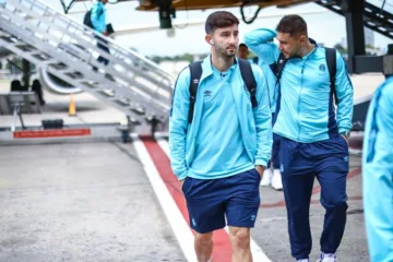 Jogadores do Grêmio desembarcam na Argentina para jogo contra o Estudiantes pela Copa Libertadores (Lucas Uebel/Grêmio FBPA)