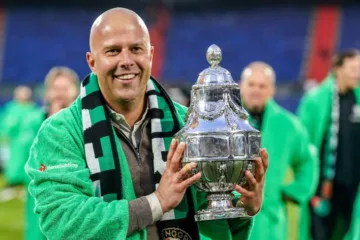 Arne Slot, treinador do Feyenoord, segura troféu da TOTO KNVB Cup (Andre Weening/Orange Pictures - BV/Alamy Live News)