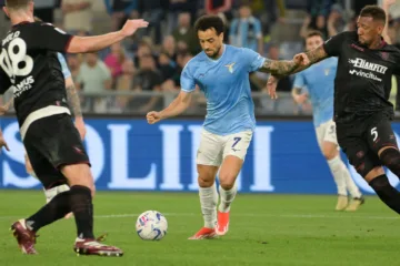 Felipe Anderson, da Lazio, e Jerome Boateng, do Salernitana em partida doc ampeonato italiano (Roberto Ramaccia/Sipa USA - Sipa US/Alamy Live News)