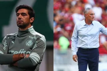 Abel Ferreira, técnico do Palmeiras, Tite, técnico do Flamengo (César Greco / Agência Palmeiras - Gilvan de Souza / Flamengo)