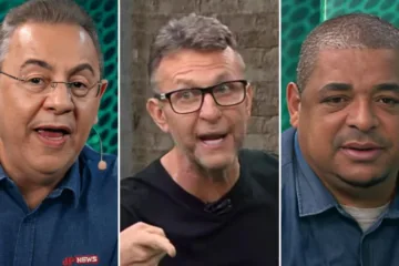 Os analistas esportivos Flavio Prado, Neto e Vampeta apontam ameaçado de rebaixamento (Reprodução/YouTube)