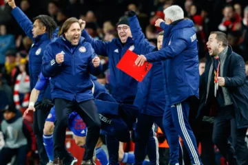 Pedro Martins comemorando gol no comando do Olympiacos (Créditos: Twitter CoachPMartins)