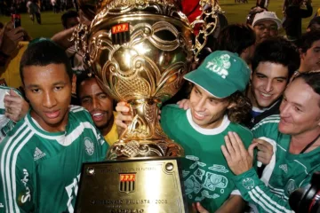 Jogadores do Palmeiras com a taça de campeão Paulista de 2008 (Divulgação/X/Palmeiras)