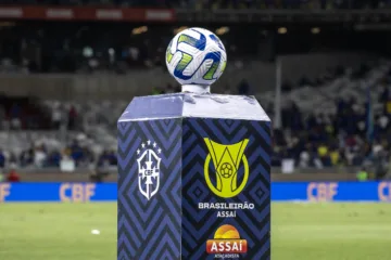 Bola do Brasileirão Série A de 2023 exposição antes de jogo. (Créditos: Staff Images / CBF)
