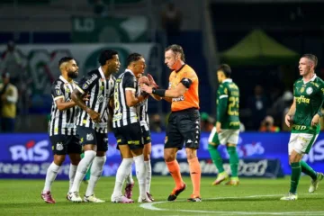 Santos reclama de arbitragem em derrota para o Palmeiras. Foto: Renato Pizutto/Ag. Paulistão