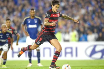 Pedro em ataque na partida Flamengo x Millonarios (Créditos: Marcelo Cortes/ Flamengo)