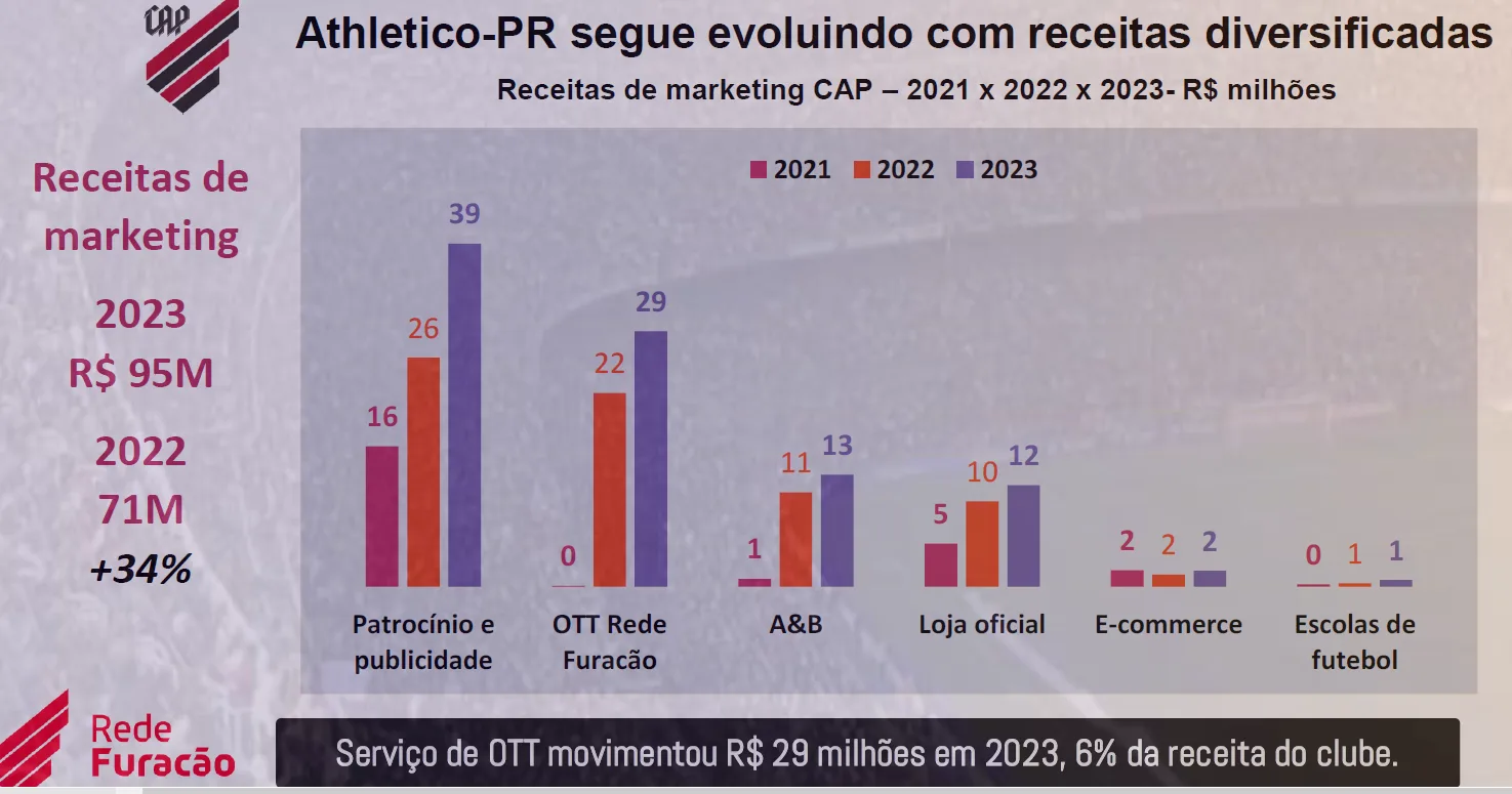O que chama atenção é constatar que nos últimos anos o clube vem buscando ampliar suas receitas, com quase R$ 100 milhões só de marketing em 2023.