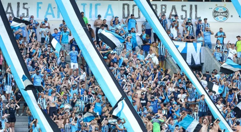 Torcedores do Grêmio; clube foi um dos afetados pela chuva no RS (LUCAS UEBEL/GREMIO)