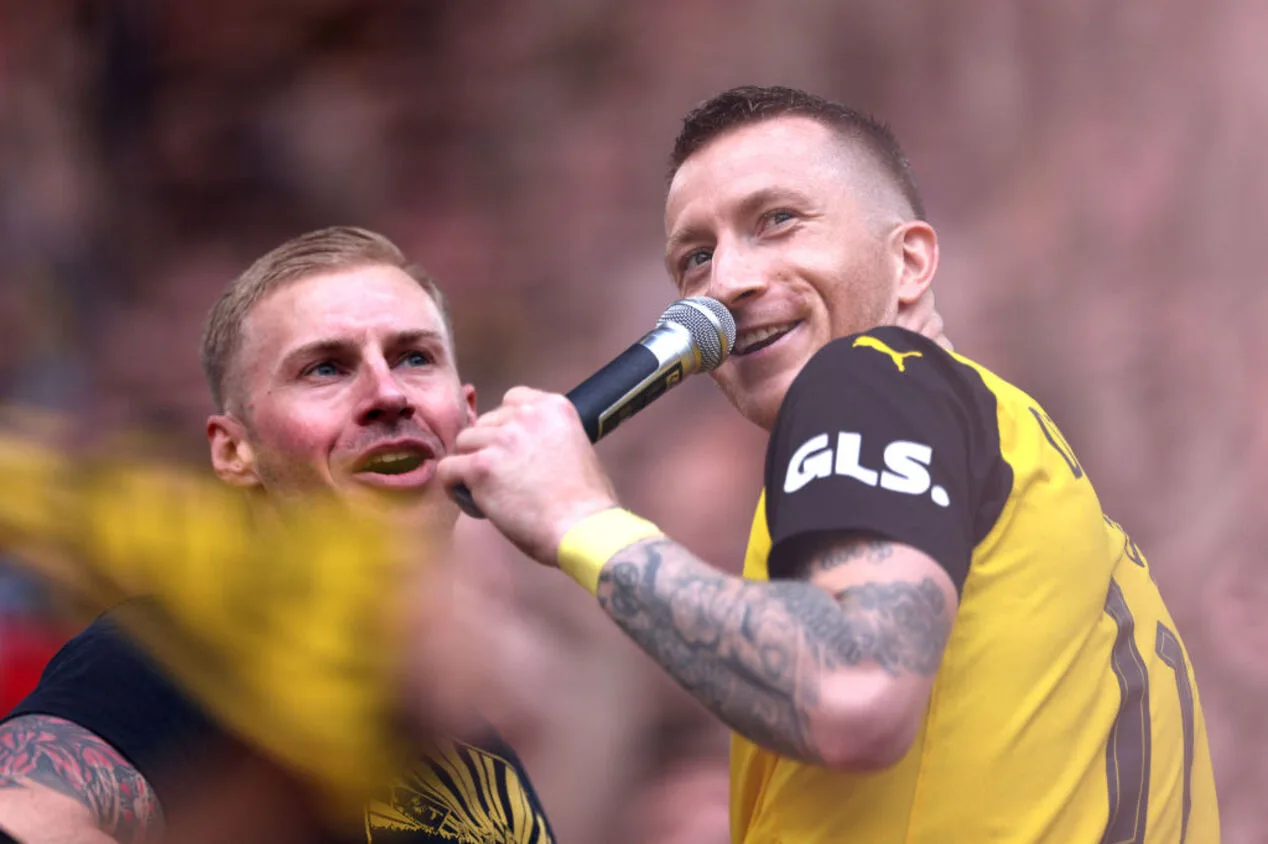 Marco Reus se despediu, oficialmente, do Borussia Dortmund com uma goleada por 4 a 0 sobre o Darmstadt, no estádio Signal Iduna Park. Depois do jogo válido pela última rodada do Campeonato Alemão (Bundesliga), o jogador de 34 anos deixou o gramado e conseguiu um espaço na Muralha Amarela, principal torcida organizada do time aurinegro.