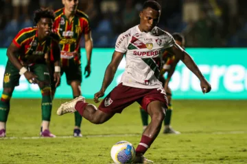Jhon Arias cobrando pênalti que deu vitória por 2 a 0 ao Fluminense contra o Sampaio Corrêa na Copa do Brasil. (Créditos: MARCELO GONCALVES/FLUMINENSE FC)