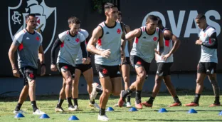 Jogadores do Vasco durante treino em 24/04/2024. (Créditos: Leandro Amorim/Vasco)