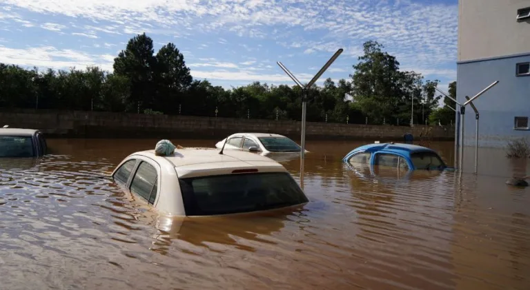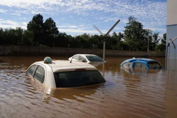 Carros em uma área alagada da Regiao Metropolitana do Rio Grande do Sul (AP Photo/Carlos Macedo)