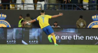 Cristiano Ronaldo comemora gol marcado pelo Al-Nassr contra o Al-Khaleej (Reprodução/X/Al-Nassr)