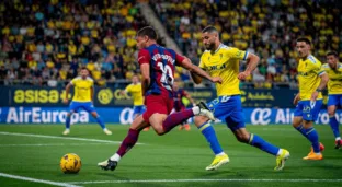 Vitor Roque em campo pelo Barcelona contra o Cádiz pela La Liga (Reprodução/X/Barcelona)