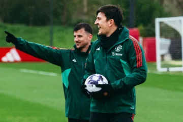 Maguire durante treinamentos pelo Manchester United (Reprodução/X/Manchester United)