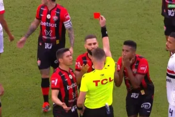 Após quatro minutos de avaliação do VAR e após ida ao vídeo, Abatti Abel expulsou o jogador do Vitória.