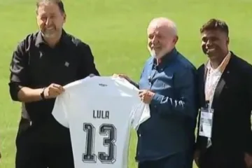 O Presidente Lula (PT) participou neste feriado do Dia do Trabalho, 1º de maio, de um evento organizado por centrais sindicais. O evento foi na Neo Química Arena, estádio do Corinthians. Na ocasião, o político recebeu uma camisa do Timão de Augusto Melo, presidente do clube. A camisa leva o número 13 em alusão ao número do partido de Lula da Silva.