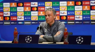 Técnico Luis Enrique em coletiva (Divulgação - X - PSG)