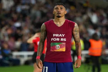 "Orem pelo Rio Grande do Sul", diz a mensagem de Raphinha (Alex Caparros/Getty Images)