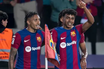 Raphinha e Lamine Yamal em jogo do Barcelona (Divulgação - X - Barcelona)