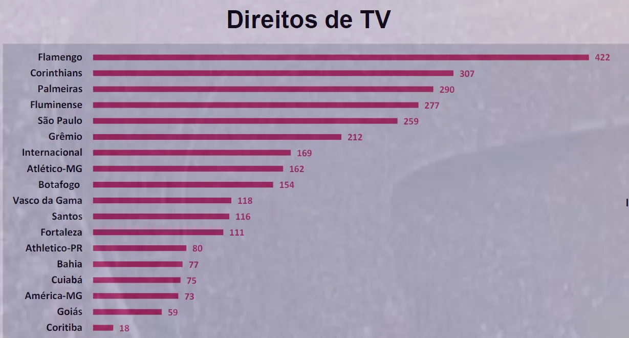 Veja abaixo os valores recebidos pelas principais equipes brasileiras com direitos de TV no último ano (em R$ milhões):
