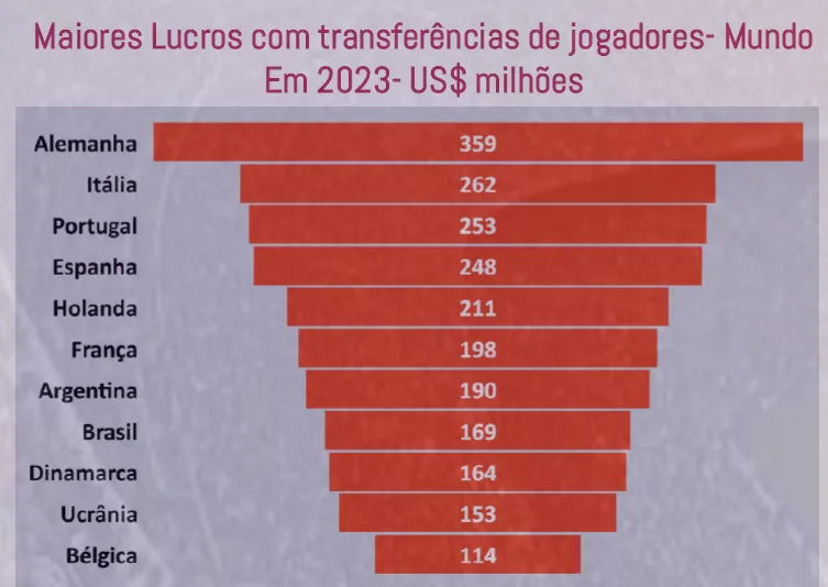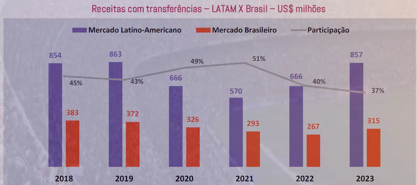 Um fato interessante, conforme está detalhado no estudo da empresa Sports Value, é que o Brasil foi o 9ª país do mundo que mais arrecadou com vendas de jogadores, sendo o líder da América Latina neste quesito, com um total de 315 milhões de dólares de receita (R$ 1.5 bilhão).