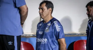Carille em jogo do Santos contra o Botafogo-SP no Brasileirão Série B. (Créditos: Raul Baretta/ Santos FC)