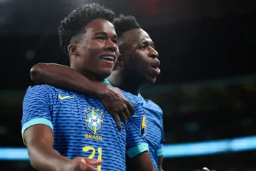 Endrick e Vinícius Júnior pela seleção brasileira (Catherine Ivill/Getty Images)
