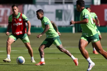 Dudu em treino do Palmeiras neste sábado, 15/06/2024. (Créditos: Cesar Greco/Palmeiras/by Canon)