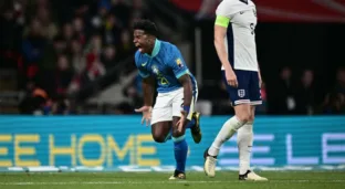 Endrick comemora gol marcado pela seleção brasileira (Soccer Images / Alamy Stock Photo)