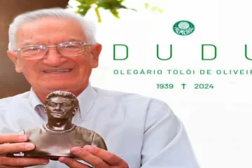 “Com o coração partido, a Sociedade Esportiva Palmeiras lamenta informar que faleceu nesta sexta-feira (28), aos 84 anos, Olegário Tolói de Oliveira, o Dudu, um dos maiores ídolos de nossa gloriosa história. Quarto jogador que mais vezes atuou pelo Verdão, clube que defendeu em 615 jogos e por 13 temporadas seguidas, Dudu estava internado havia cerca de um mês, após sofrer fissura na bacia, e morreu por consequência de infecção abdominal. Ícone das duas Primeiras Academias, grande parceiro do Divino Ademir da Guia e campeão pelo clube como atleta e treinador, Dudu nos deixa um legado sem igual de amor ao #MaiorCampeãoDoBrasil. Em respeito à memória de um dos maiores craques do Alviverde em todos os tempos, a presidente Leila Pereira decreta luto oficial por sete dias. Durante esse período, as bandeiras do Palmeiras, do Brasil e do estado de São Paulo, localizadas em nossa sede social, permanecerão hasteadas a meio-mastro.”