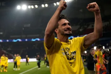 Hummels comemora classificação do Borussia Dortmund contra o PSG na Champions League (AP Photo/Christophe Ena)