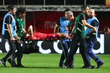 Jogador do Argentinos Juniors é retirado do gramado após lesão em lance com Marcelo, do Fluminense (Néstor J. Beremblum/Alamy Live News)