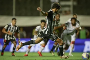 Gustavo Scarpa marca de pênalti para o Atlético-MG sobre o Vitória (Pedro Souza / Atlético)