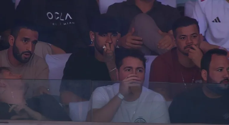 Embora tenha um forte carinho pelo Flamengo, Neymar foi discreto após Luiz Araújo abrir o placar com um golaço. Permanecendo sentado, o ex-jogador do Santos apenas colocou a mão próximo da boca enquanto os demais rubro-negros foram ao delírio.