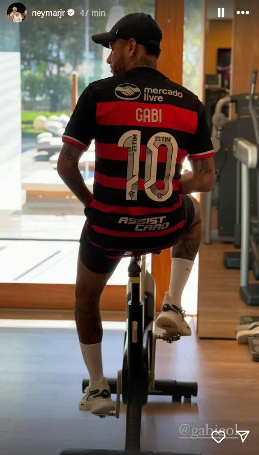 Mesmo sem estar jogando, Neymar, do Al-Hilal, da Arábia Saudita, segue sendo assunto. Nesta quarta-feira (12), o jogador agitou o Instagram ao postar uma foto em seus stories treinando em uma bicicleta ergométrica.
