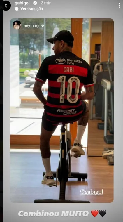 O destaque foi o fato dele estar usando uma camisa do Flamengo com o número 10 e o nome de Gabigol, além de marcar o próprio atleta na postagem