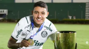 Pedro Bicalho com o título conquistado pelo Palmeiras (Reprodução/Instagram/Palmeiras)