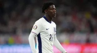 Kobbie Mainoo em campo pela Inglaterra na Eurocopa (PA Images / Alamy Stock Photo)