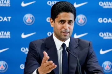 Presidente Nasser Al-Khelaifi durante entrevista coletiva no PSG (Reprodução/X/PSG)