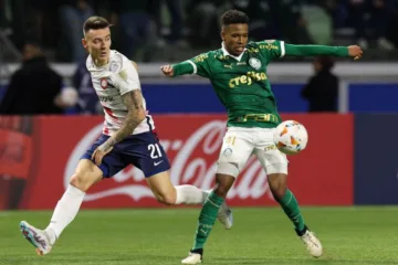 Estêvão disputa bola em jogo da Libertadores (Cesar Greco - Ag. Palmeiras)