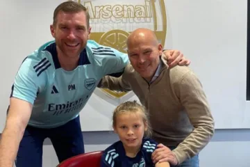 “Hoje é um dia de orgulho para nossa família, com Raphie se juntando à família Arsenal. Agora aproveite a viagem, meu filho”, publicou. Per Mertesacker, ex-zagueiro dos Gunners e diretor da base, também apareceu nos registros.